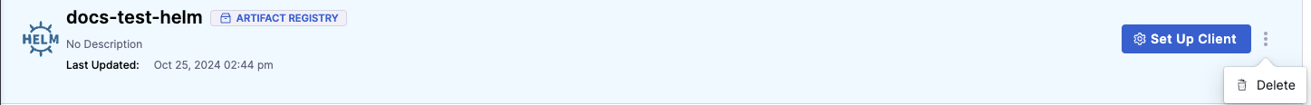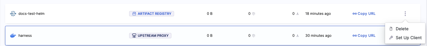 - In Registries, select the three dots on the right of the registry you want to delete.