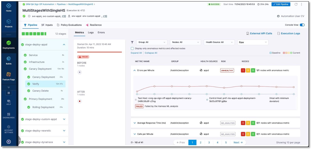 Metric analysis helps automatically identify variations in metrics after deployment before they become widespread issues.