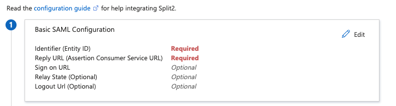 1. Navigate back to Azure and use the value for Assertion Consumer Service URL, provided in Split in the configuration parameters, into the Basic SAML Configuration box for Reply URL.
