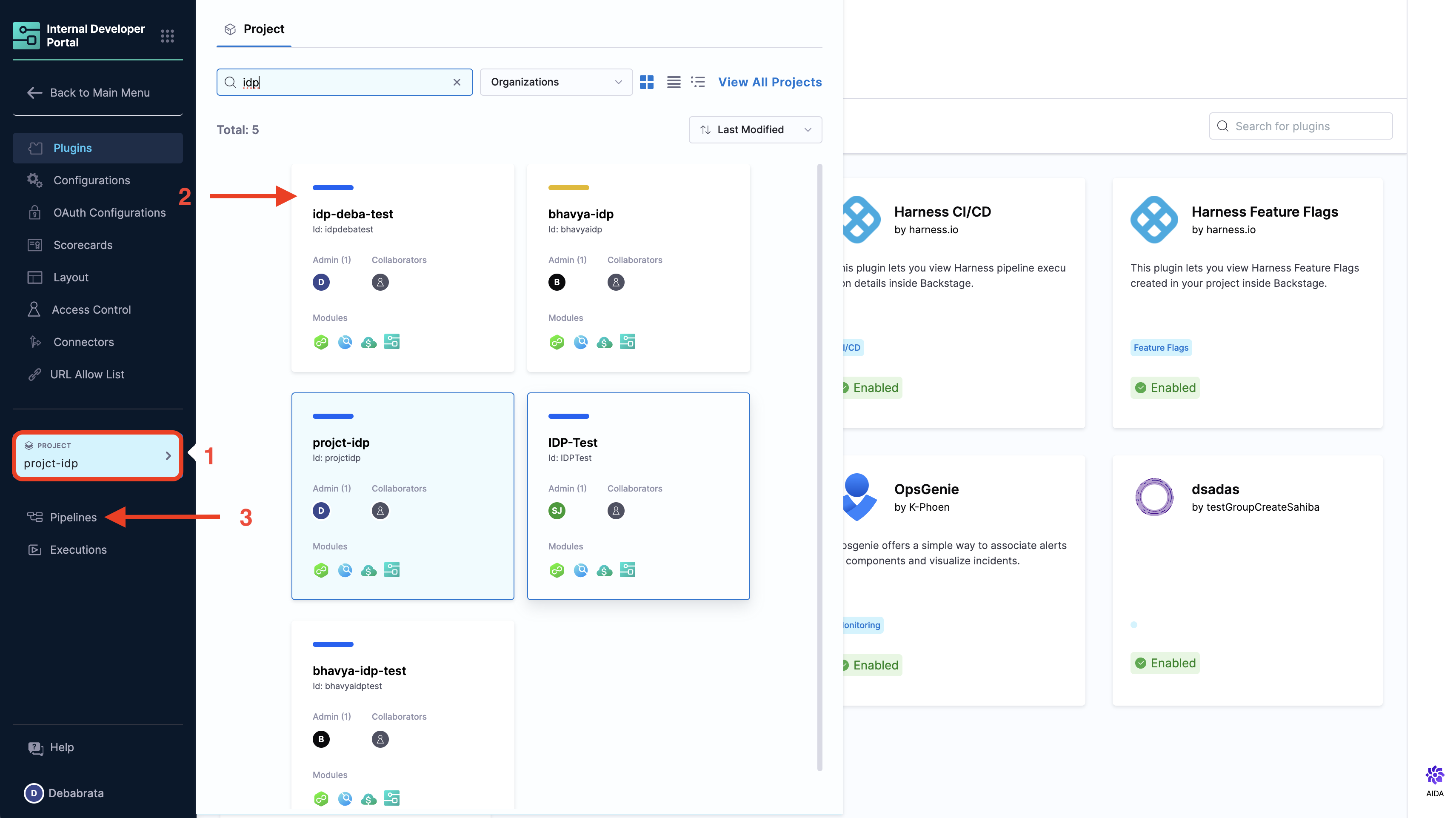 1. Go to Admin section under IDP, select Projects, and then select a project.