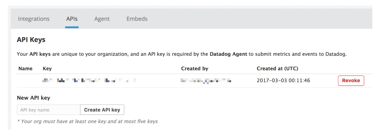 To create an API key in Datadog, do the following: