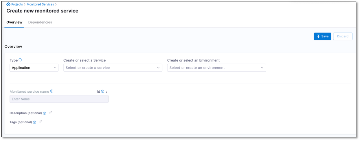 3. Enter a name for the monitored service, an optional description, and a tag.