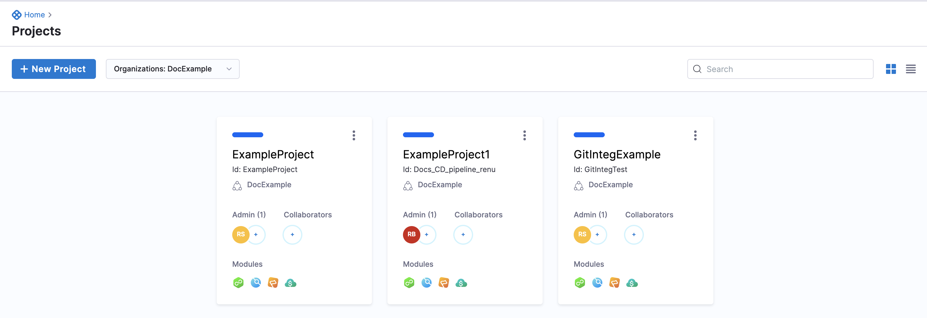 To create a new project, make sure you have the Create permissions for projects. For more information, go to Create a Project.